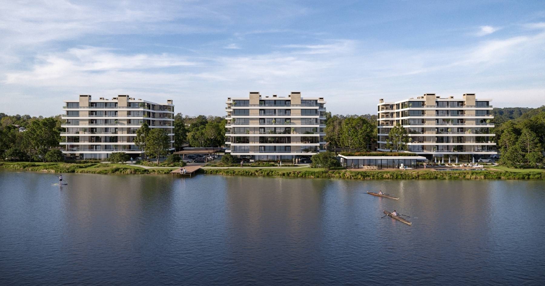 Grou Rowing reúne tres torres residenciales con 123 apartamentos, piscina exterior, muelle privado y amenities de wellness, creando un entorno único.