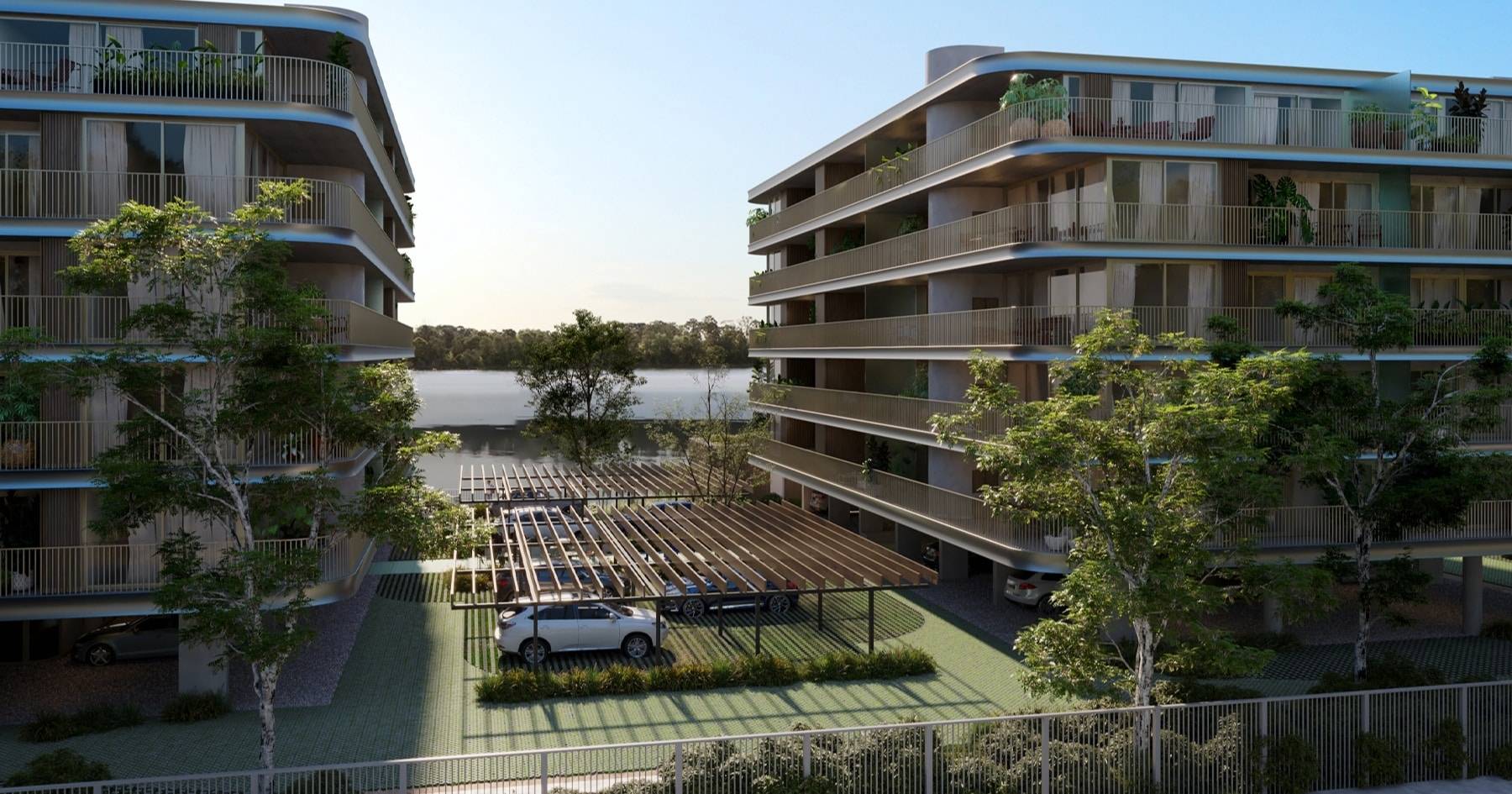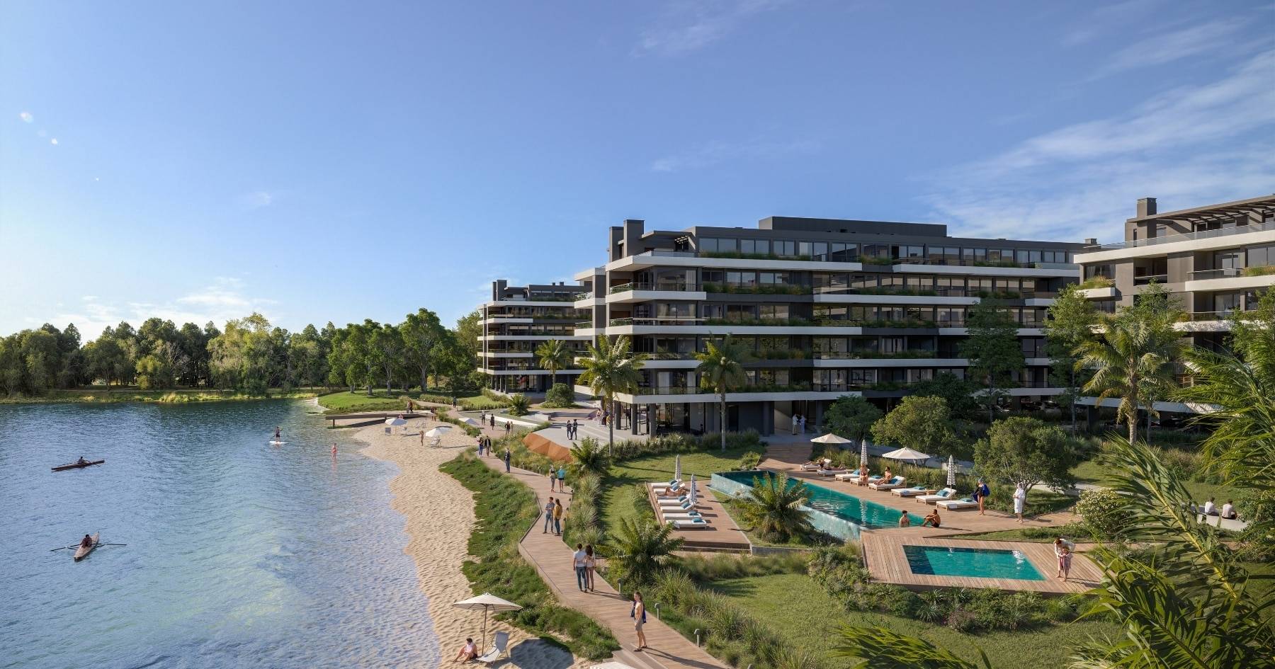 Rotunda al Lago reúne cuatro torres residenciales de baja altura sobre el lago con 168 apartamentos, 168 garages, amplias terrazas y amenities premium.