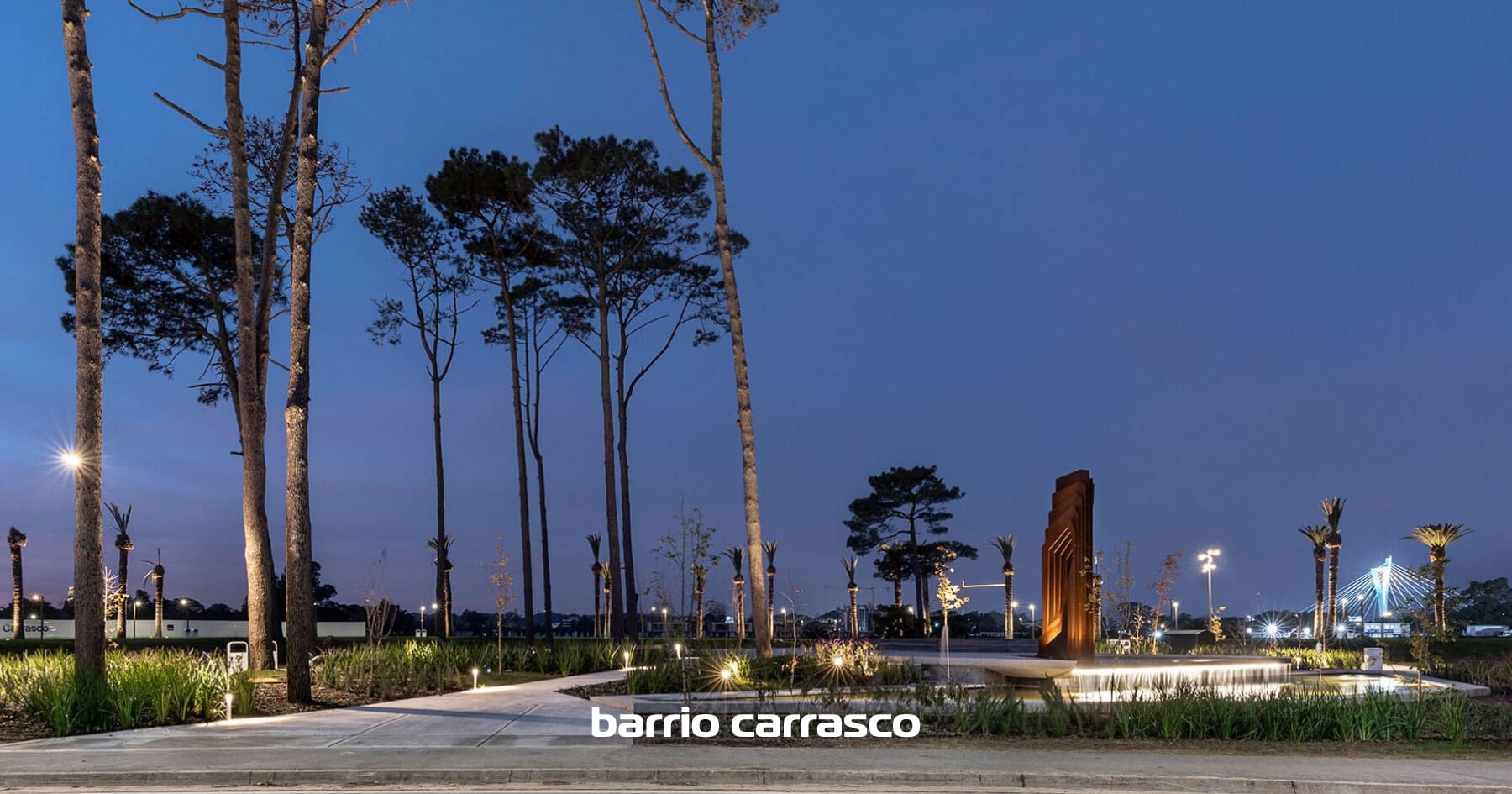 Carrasco cuenta con un nuevo espacio público de calidad, la nueva plaza con acceso público ubicada en lo que será el desarrollo Liv ha sido inaugurada al público, donde destaca su espejo de agua con cascada y moderno diseño.