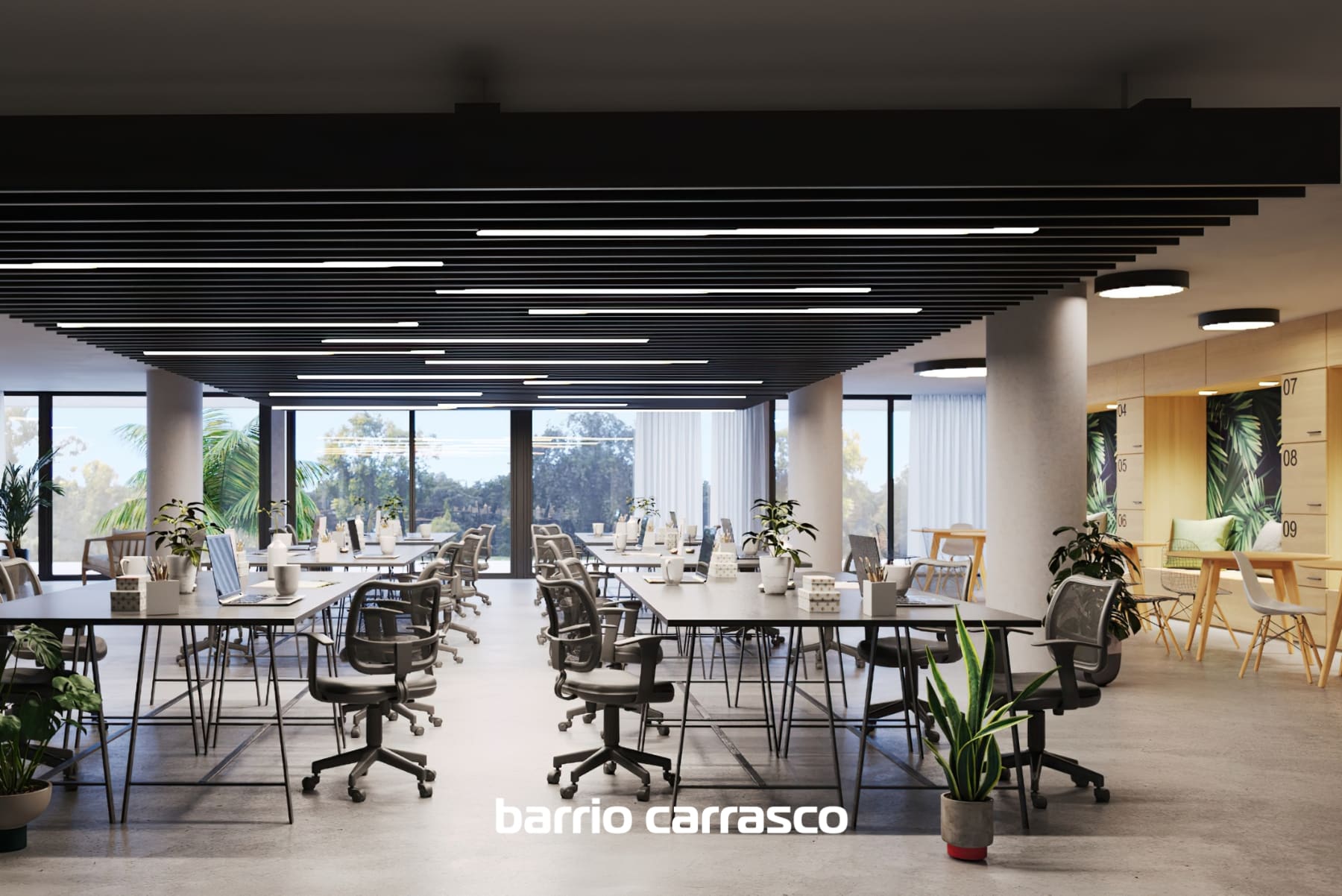 El edificio incorpora Oficinas, Co-Work Area y Business Center con parking exclusivo, luz natural, entorno verde y herramientas digitales, facilitando tanto el trabajo colaborativo como el estudio concentrado sin salir del complejo.