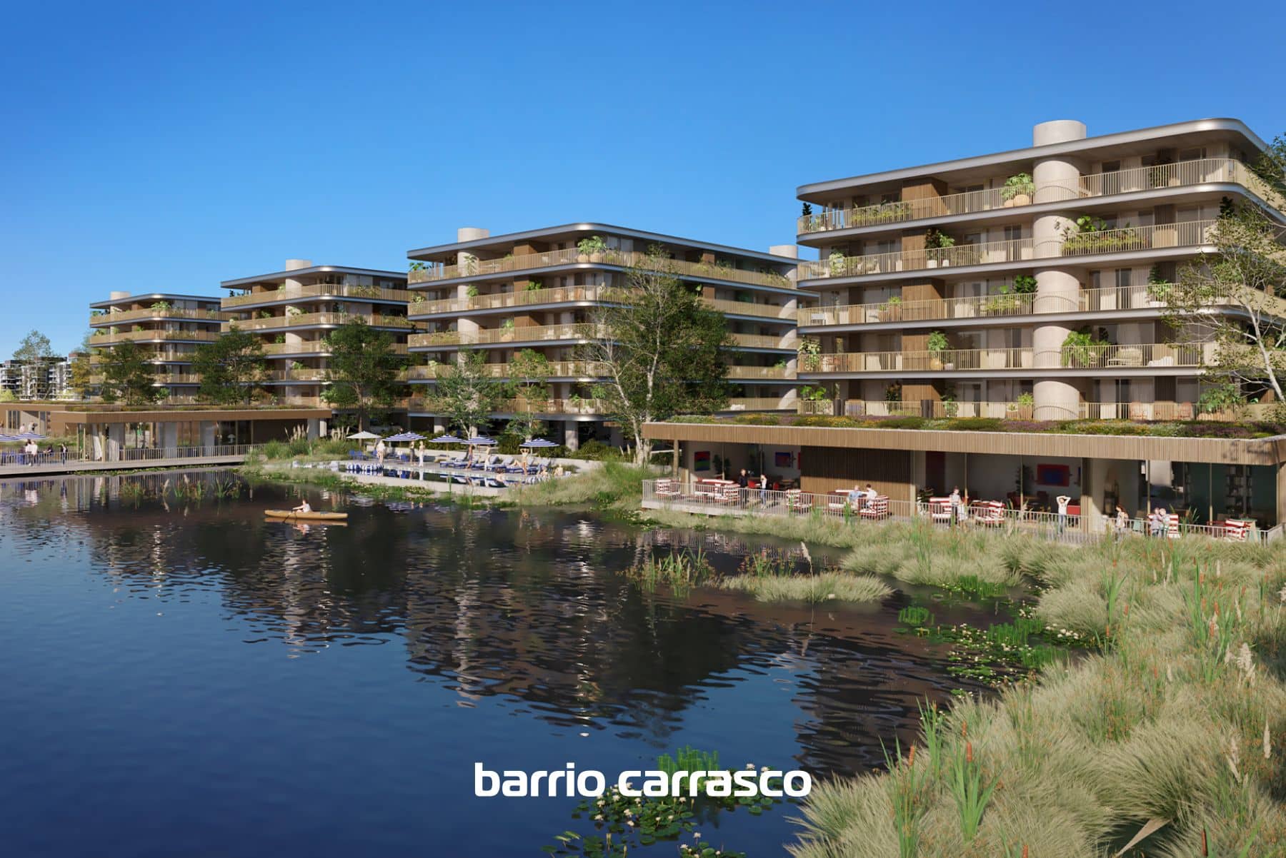 Ventura Zocalo reúne vida urbana, servicios cotidianos y bienestar, integrando paseo comercial, oficinas y amenities pay per use junto al parque lineal, los lagos y la energía del Este de Carrasco, en un entorno con vistas al mar, jardines diversos y proximidad a la playa.