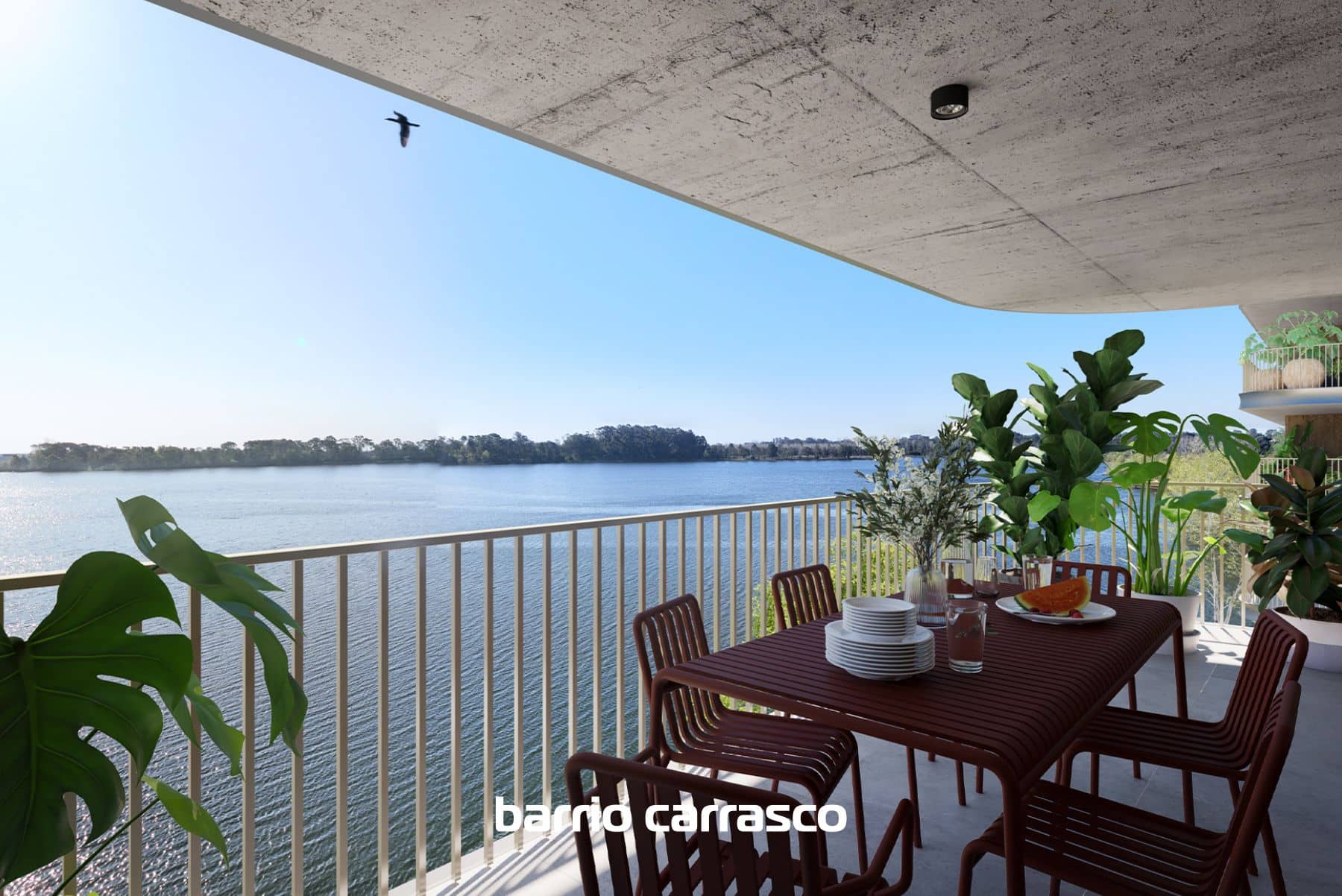 Rotunda al Lago reúne cuatro torres residenciales de baja altura sobre el lago con 168 apartamentos, 168 garages, amplias terrazas y amenities premium.