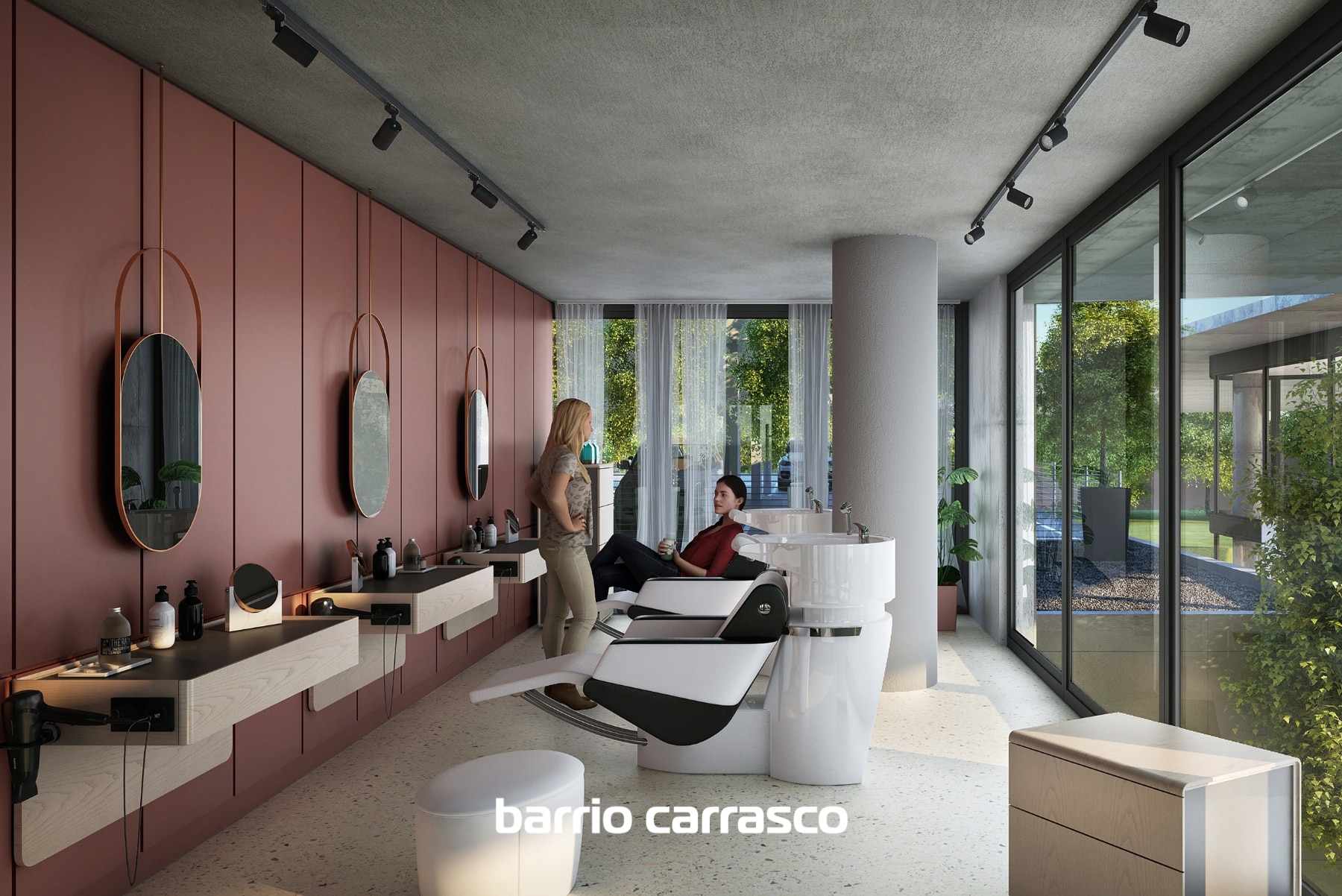 Salón de belleza, laundry y servicios cotidianos centralizados