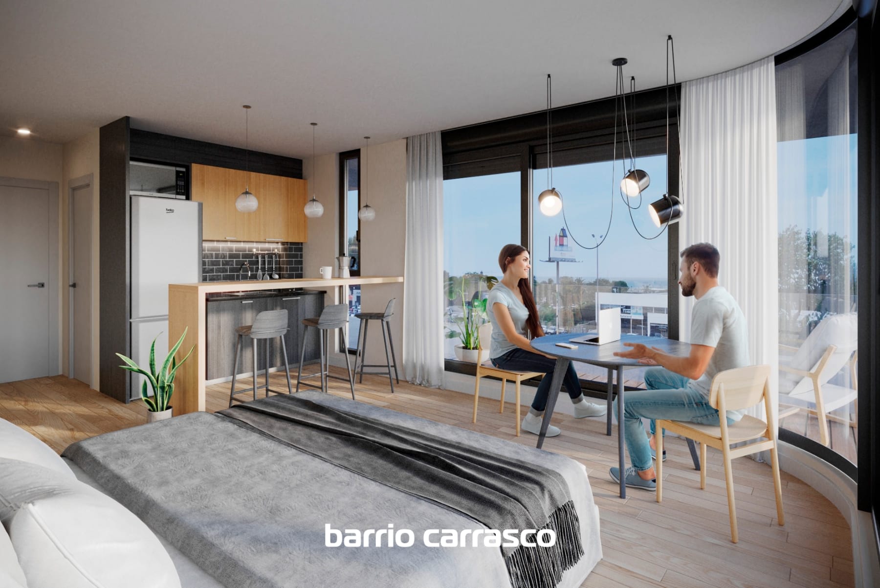 Frente a la playa de Parque Carrasco, Grou Orillas ofrece apartamentos en primera línea al mar, con terrazas amplias, parrilleros propios y espacios comunes premium.