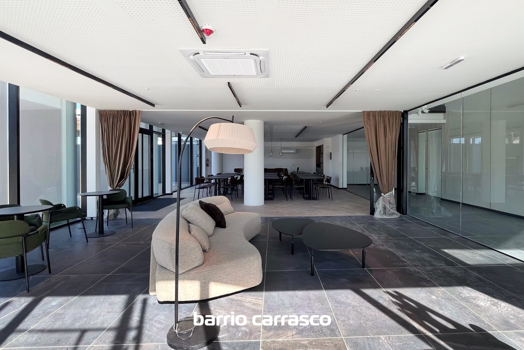 El zócalo incorpora un paseo comercial tipo parque lineal, oficinas, área de co-work, minimercado y estacionamiento exclusivo con luz natural, entorno verde y soporte digital, pensado para combinar trabajo flexible, servicios cotidianos y encuentro social en un mismo nivel.